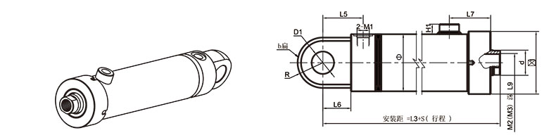 活塞桿端為內(nèi)螺紋桿頭耳環(huán)連接