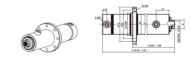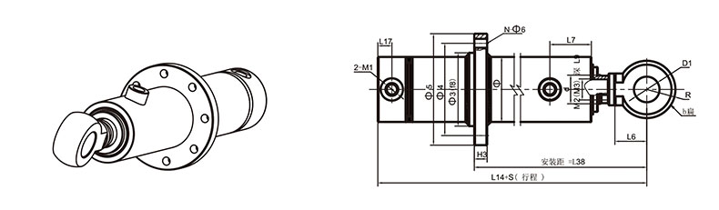 活塞桿端為內螺紋桿頭耳環(huán)連接
