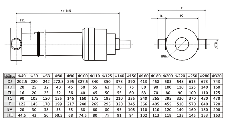 冶金液壓缸尾部銷(xiāo)軸外形安裝尺寸圖