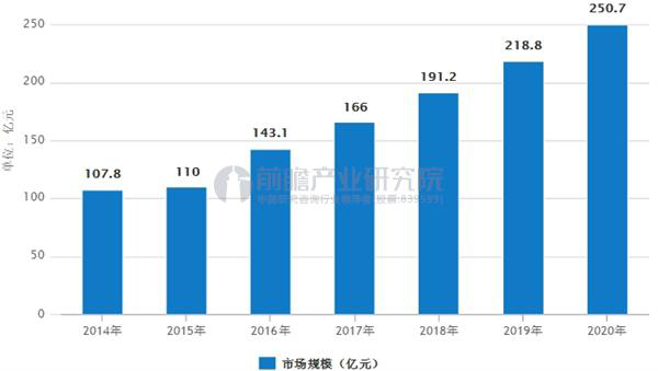 據(jù)前瞻產(chǎn)業(yè)研究院發(fā)布的《2018-2023年中國立體車庫行業(yè)市場需求與投資戰(zhàn)略規(guī)劃分析報(bào)告》數(shù)據(jù)顯示,2013年,立體車庫國內(nèi)銷售總額為94.1億元,同比增長23.54%;2014年,國內(nèi)銷售總額為107.8億元,同比增長14.47%。假設(shè)到2020年,我國汽車保有量到3億輛,未來五年行業(yè)年均復(fù)合增長率約為15.05%,2020年立體車庫國內(nèi)銷售總額將達(dá)到250.7億元,市場將迎來爆發(fā)。