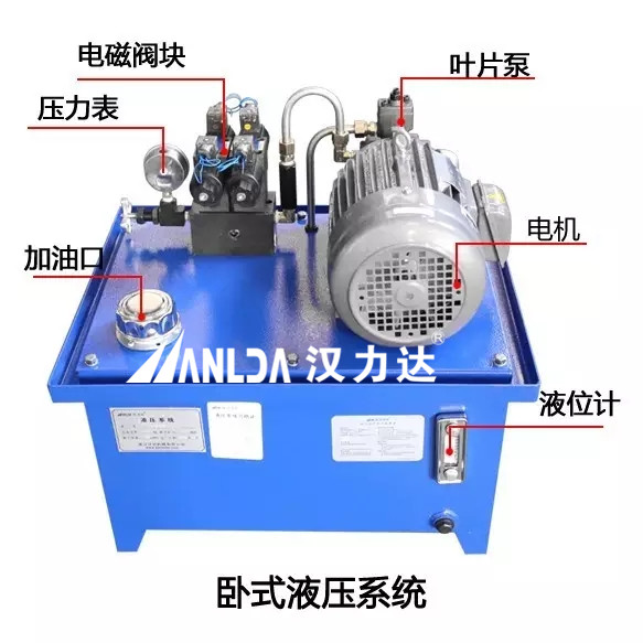 也稱為液壓泵站、液壓站、液壓油站等。液壓系統(tǒng)通常都是由液壓元件(動力元件、執(zhí)行元件、控制元件、輔助元件)和工作介質(zhì)兩大部分組成。液壓系統(tǒng)按照電機安裝方式,分為立式、臥式、旁置式液壓系統(tǒng)。用實拍圖片來直觀感受下液壓系統(tǒng)的組成: