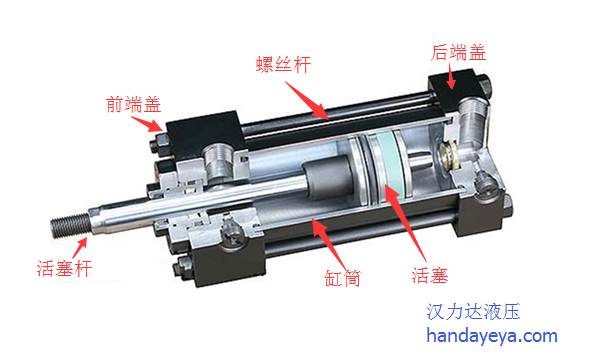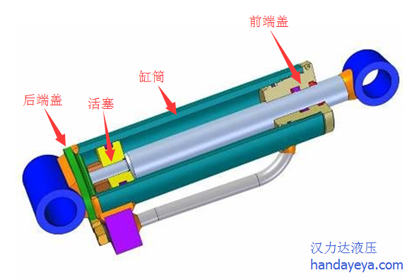 通常情況下,液壓缸由后端蓋、缸筒、活塞、活塞桿和前端蓋等主要部分組成。